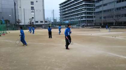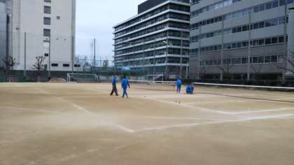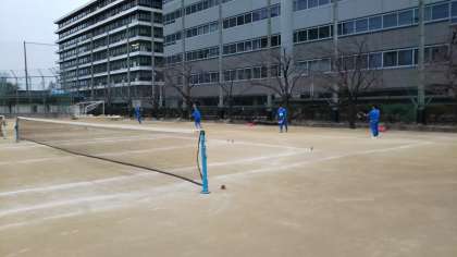 今日の練習会を終え、学校に戻ってから、実戦形式で課題であったサーブを中心に練習を短時間行っています。