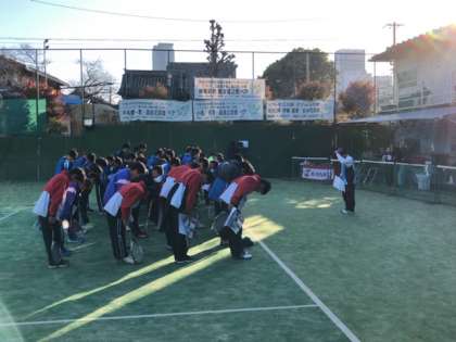 明星中学校にて、男子のソフトテニス研修大会が行われています。