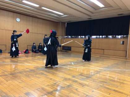 寒い中ですが保護者の方々にも応援に来ていただいています。頑張れ東中学校剣道部!