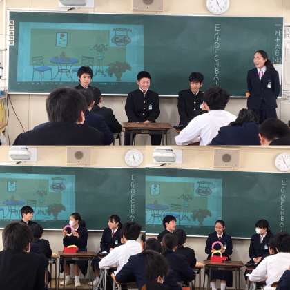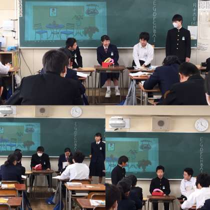 3組の様子です。青木先生が参観に来てくださり、審査にも加わってくださいました。練習の成果を発揮し、どの班も上手に演じていました。審査の結果、演技力が特に優れたCグループが1番でした。