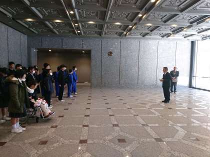 大阪市役所の1階で作品展の開会式がおこなわれています。