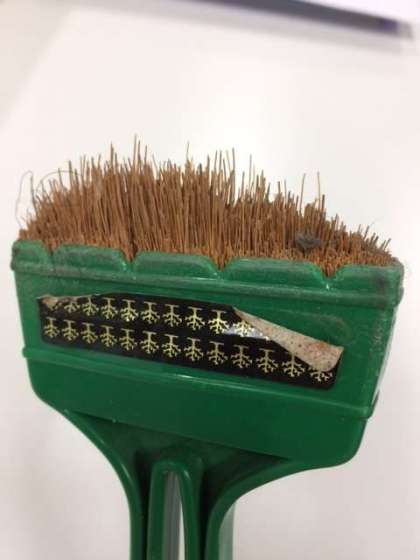 2年2組のドアレールを掃除するためのブラシが、そろそろ引退の時期を迎えました。