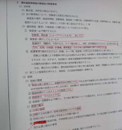 高等支援学校の入学者選抜について、先生からの説明を聞いています。