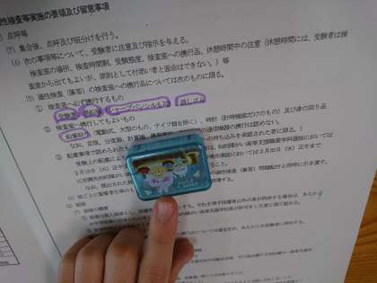 大事なところはマーカーでチェックしたり、メモしたりして真剣に聞いています。