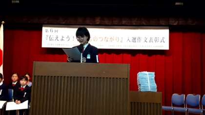 出席し表彰された東中生は素晴らしい作文を発表し、会場の皆さんに感動を与えてくれました!