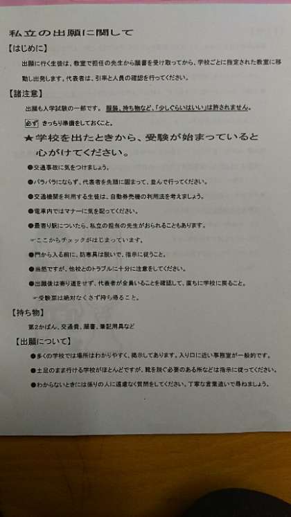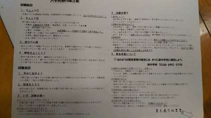 入試当日のこともプリントで配布したので、しっかり読んでおきましょう。