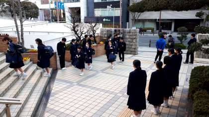 生徒会と部活動部長会議の皆さんがあいさつ運動に取り組んでくれています。寒さに負けず、頑張っています!