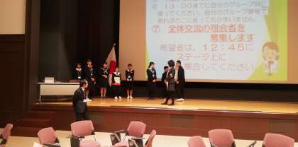 午後からの全体交流の司会者に東中生2名とも立候補しています。