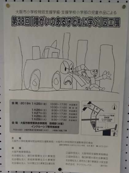 大阪市立小学校特別支援学級・特別支援学校小学部児童の図工展が、東淀川区にあるインクルーシブ教育推進室にて開催中です。