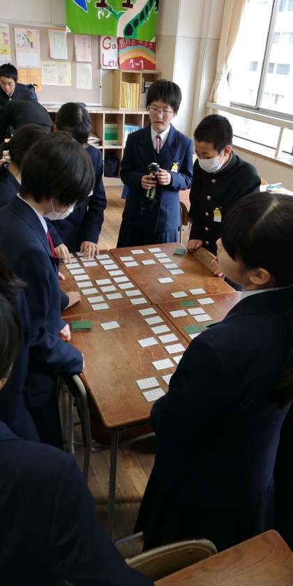 昼休みの時間を活用して、教室で百人一首の練習をしています。