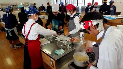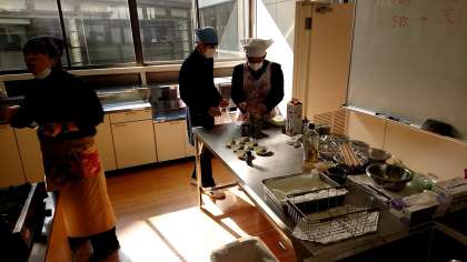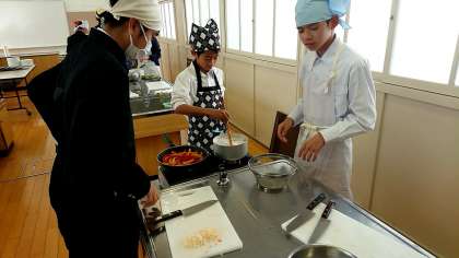 じゃがいもをゆでて固さのチェック、サバを切って味つけと、どんどん作業をすすめています!