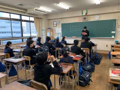 各学年の活動目標を決めた後、放送委員長から生徒議会での伝達事項がありました。