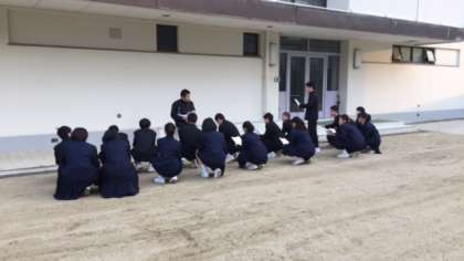 本日の朝も体育委員は7時30分に集まり、北村先生のもと注意事項の確認と出発式の予行を行なっています。