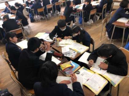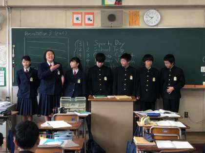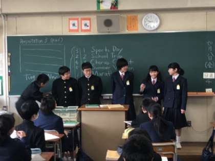 1年生の英語の授業では班別でプレゼンテーションを行いました。