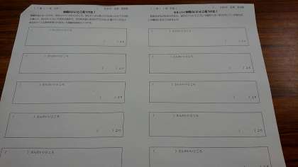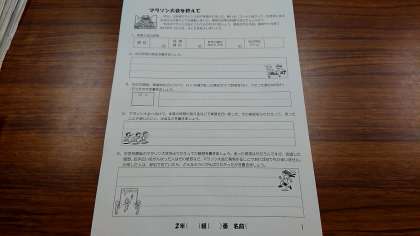 2年生は6限目の学級活動で「マラソン大会を終えて」として振り返り、そして班活動の取り組みの1つとして今年度から始めた「いいとこ見つけ」(仲間のいいところを発見し、伝え合うことで自分自身を知り成長していこうという取り組みになっています)を行っています。