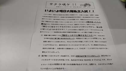 いよいよ明日は、京阪神地区の私立高校入試です。