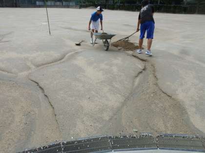 ただ、運動場は大量の雨で、その流れでちょっとした小川?(大雨になればいつものことですが)ができました。