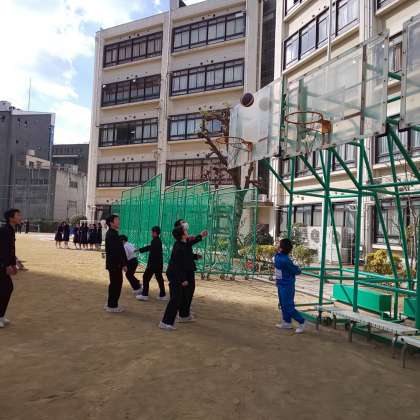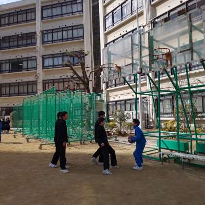 昼休みの運動場、東中生は仲間と共に元気よく過ごしています。