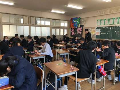 本日2年生は、来月に行われる予餞会に向けて、お世話になった3年生に対してメッセージを書きました。