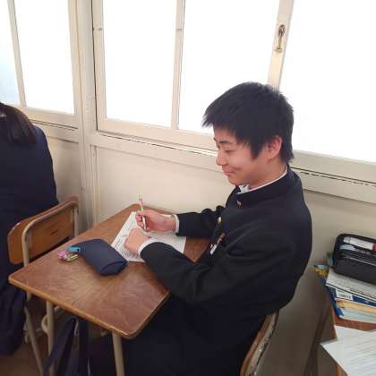 1組では、3年間を振り返って班活動の振り返り、終わった公立一般入試に向けた『自己申告書』の作成に取り組んでいます。
