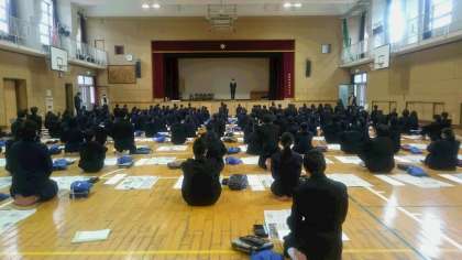2年生では、本日1限目に書き初め大会が行われています。
