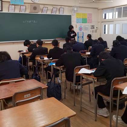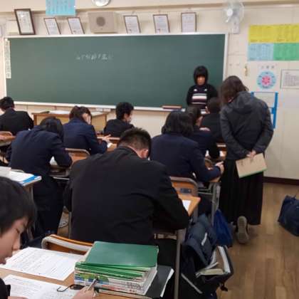 学年集会の後、4組の教室では『私立受験を終えて』ワークシートに取り組んでいます。