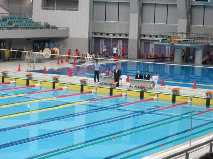 8月13〜15日の3日間にわたり、大阪市教育委員会、大阪市中学校体育連盟、(一財)大阪水泳協会が主催する、大阪市中学校学年別水泳競技大会が大阪プールで開催されています。昨日は午前9:20から開会式が行われ、主催者の代表の方々からのご挨拶や激励の言葉の後、選手宣誓が行われ、競技大会がスタートしました!
