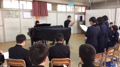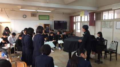 2年生1組では音楽の授業が行われています。