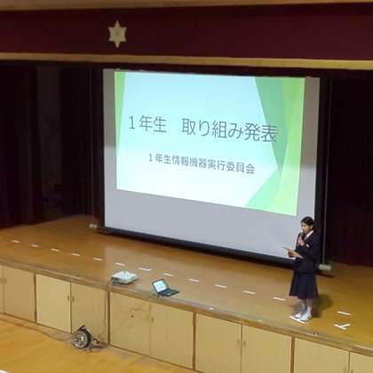 1年生による情報機器実行委員会の発表の様子です。