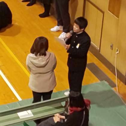情報機器実行委員会から保護者の方へのインタビューの様子です。