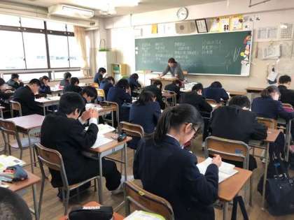 1年3組ではインフルエンザを含むかぜ様疾患の感染拡大を防止するため2度にわたり学級臨時休業の措置がとられました。そのため2週にわたり同一曜日の授業が実施できないこととなり、学年末テストに向けて学習保障が必要になっています。