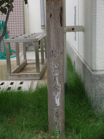 標柱には昭和47年度3月14日とあります。恐らく旧東中、もしくは船場中学校にあった卒業記念樹でしょう。統廃合後新校舎が出来上がった時(平成元年)に現在地に移設されたものだと思われます。標柱も朽ちてきており、文字も読みづらくなってきていますので、大切な遺産を守っていくためにも、標柱を新しくしたいと思います。どなたか詳しいいきさつをご存知の方はご一報を。