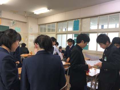 友達同士で性格分析したことを、意見交流しています。