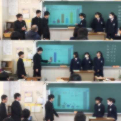 協力しながら、楽しそうに練習していました。暗記しないとダメですか?と、みんな覚えることには抵抗があるようです。しかし、短い文なので、どのクラスも間違えながらも原稿なしで発表できていました。