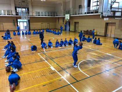 今日はゴール下シュートとレイアップシュートの練習を班別で行なっています。