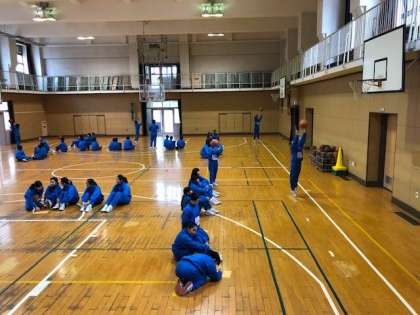 本日も1時間目は1年1・2組、2時間目は1年5組が元気にバスケットボールに取り組んでいます。