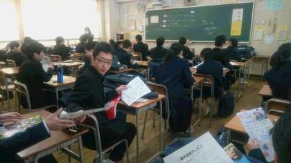 テストが終わって、ホッとしたところに、修学旅行の話でテンションもあがりますが、真剣に先生の説明を聞きます。
