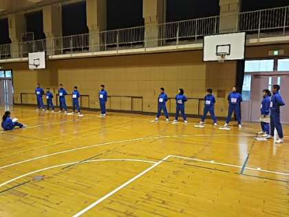 今週水曜日に予定されている1年生球技大会に向けて、体育委員全員と学級代表2人、審判を担当する生徒で朝練習を行いました。