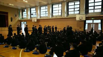 本日、今週末に行われる予餞会の練習を行いました。また、卒業式実行委員会のメンバーの発表と委員長からの声かけがありました。