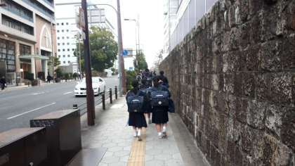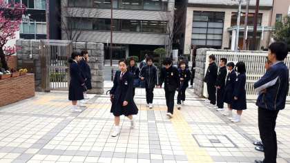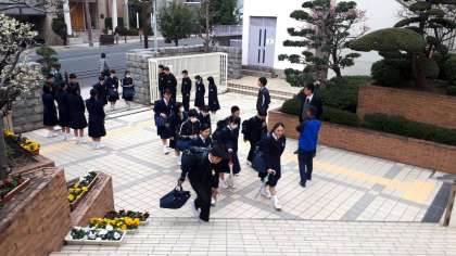 昨日の部活動部長会議で、引き続きあいさつ活動に取り組むことを決定した部長の皆さんが。正門前で大きく、元気な声であいさつをしてくれています。