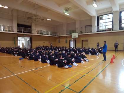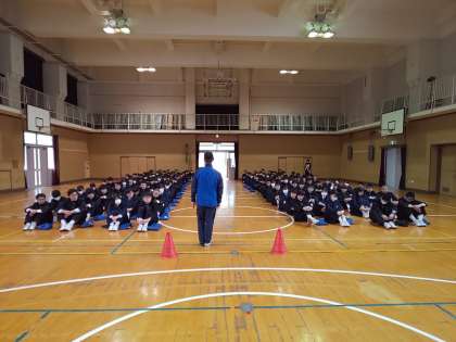 5限 3年生は、体育館で予餞会の練習を行っています。