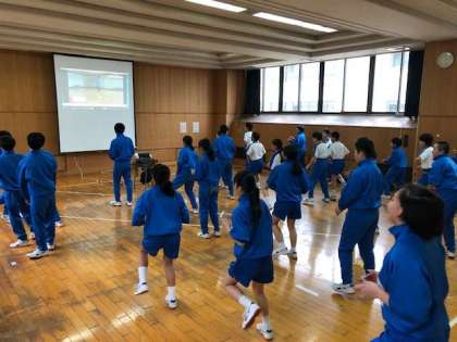 6時間目は1年5組のダンスです。5組は今日がダンス2時間目なので8つの基本ステップを練習しています。元気!とにかく元気に全力で楽しみながらダンスを学習しています!