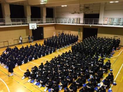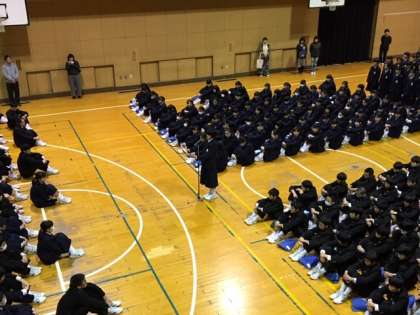 1年生の贈る言葉と合唱「流れゆく雲をみつめて」です。