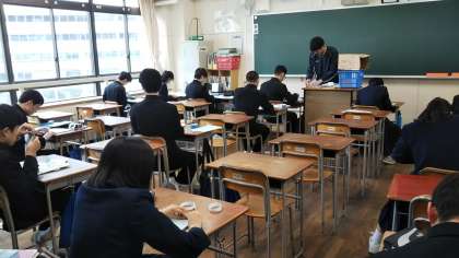今日は、公立の一般入学者の選抜受検の日で すので、教室はとても人数が少ない状況です。