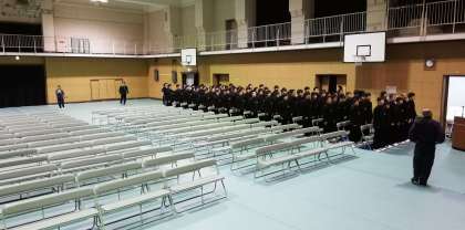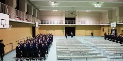 1限目は司会の萩原先生のご指導のもと、姿勢や礼、式の流れの確認を行いました。