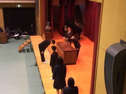 卒業証書の授与です。みなさん、しっかりと返事をしています。