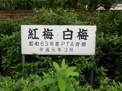 ここは本校の正門正面左、その13で紹介したトチノキの左隣とその奥にあるウメの木です。例年、卒業式の頃、それぞれに見事な紅梅と白梅が咲き誇ります。