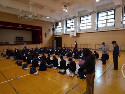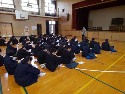 昨日、卒業式を終えましたが、体育館では公立一般選抜発表についての事前指導を行われています。
