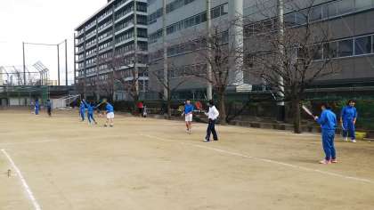 少し肌寒いですが、声をグランドに響かせ、練習を頑張っています!