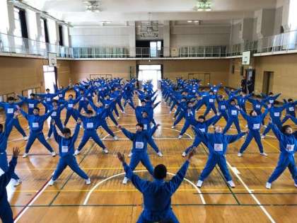 3時間目の体育館では1年生1・2・5組の3クラス合同で最後のダンスの授業に取り組んでいます。